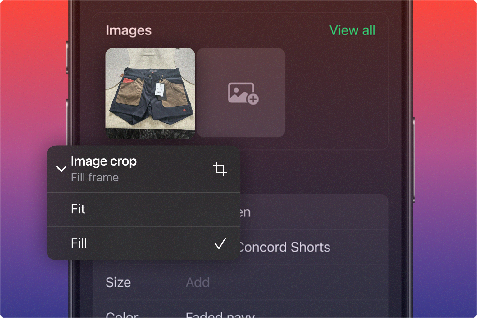 New image crop options: Images can now be set to either Fit (best for clean product images) or Fill (ideal for making your own photos cover the frame).