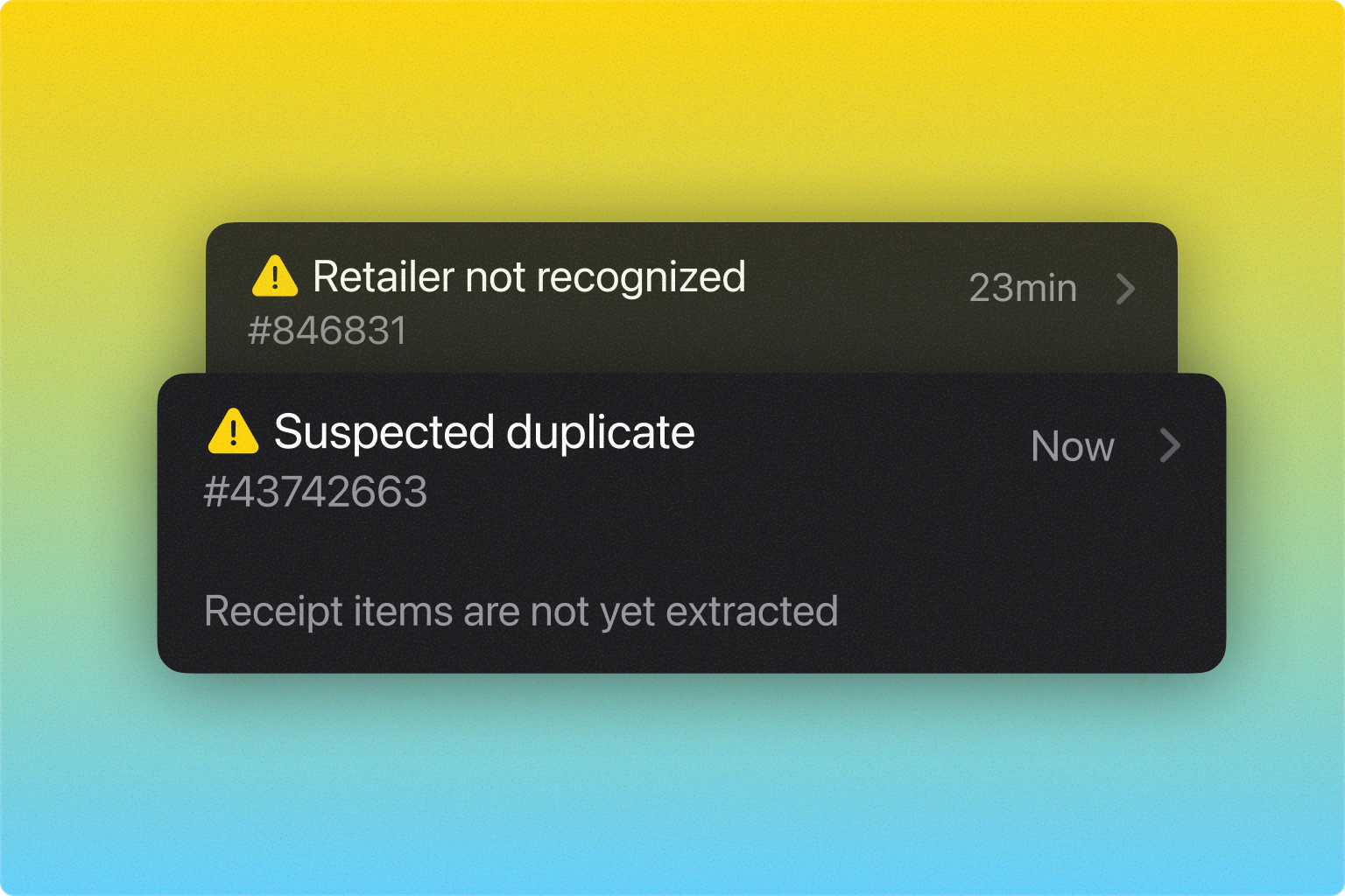 Suspected duplicate: To avoid clutter, Tings will pause extraction if a receipt looks like a duplicate of one already in your inventory. You can now review and choose to keep both or delete the duplicate.
